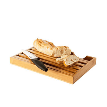 Planche à pain en bambou, grille amovible avec récupérateur, couteau à pain lame céramique dentée 15 cm, emplacement de rangement du couteau