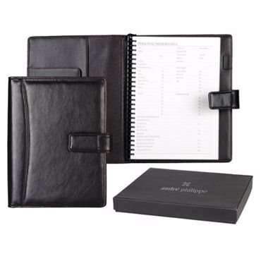 Agenda organiseur année. Grand organiseur André Philippe avec espace pour cartes de visite et porte-stylo. Boite cadeau André Philippe.