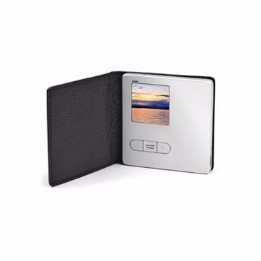 Album photo numérique, écran LCD 38 mm, stockage: environ 120 photos, fonction diaporama, format compatibles: JPG, BMP, GIF, TIF et PNG, pile lithium rechargeable, finition aluminium, étui cuir (câble USB inclus)