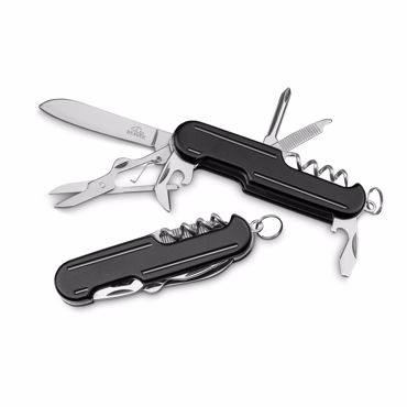 Couteau de poche en acier inox et en métal avec 7 fonctions. L’étui convenable MAN II 72159-03. fermé 80 x 12 x 21 mm