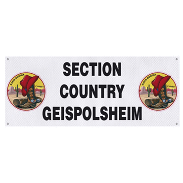 Bâches extérieure < 1 m linéaire. Livrée roulée. Durée de vie 2 à 3 mois. Descriptif marquage : 2 mm de débord si fond Plus commercial : 4 oeillets inclus - résistance aux rayures