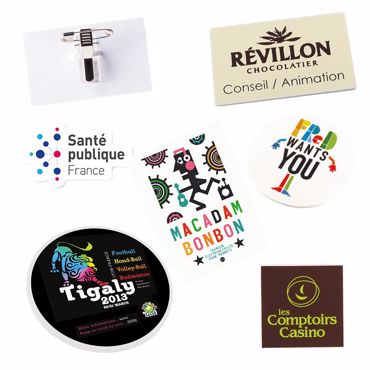 Badge avec pince-épingle métal. Fabrication française. Création à partir de 5 000 pièces.