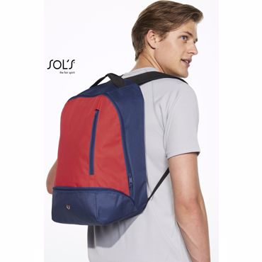 Sac à dos sport polyester 600d Qualité : 600D 100% polyester Grand compartiment central avec double curseur 1 poche frontale zippée 1 compartiment chaussures zippé sur le bas avec un œillet d'aération Bretelles réglables matelassées et renforcées Dos matelassé Couleurs disponibles :Aqua / Gris graphite,Blanc / Noir,Noir / Rouge,Rouge / French marine,Vert prairie / French marine Tailles disponibles :TUN