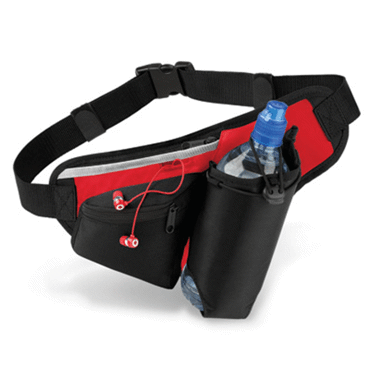 ? 150g/m2 ? 420D Polyester/ 600D Micro Rip-Stop Polyester ? sangle entièrement ajustable à la taille ? porte-bouteille d'eau ? panneau facilement accessible pour la décoration ? port pour écouteurs ipod?/MP3 compatible ? poche avant avec fermeture à glissière ? détails réfléchissants ? dimensions: 37 x 19 x 7cm ? poids approximatif du produit: 150g ? surface maximale d'impression: 8 x 11cm.
