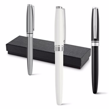 Stylo roller. Métal. Livré dans coffret cadeau rembourré. ø12 x 136 mm | Coffret: 175 x 55 x 25 mm Fourreau blanc, Stylo sous polybag, Coffret cadeau