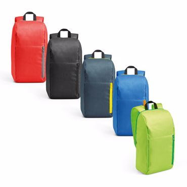 Sac à dos 600D avec poche frontale zippée. Dossier 210D et poignées rembourrées. 400 x 245 x 115 mm
