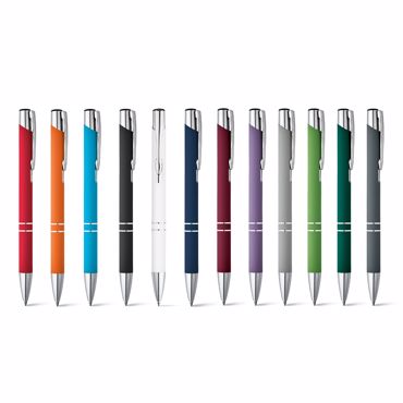 Stylo à bille. Aluminium. Corps caoutchouté. Dimension : ø10 x 137 mm