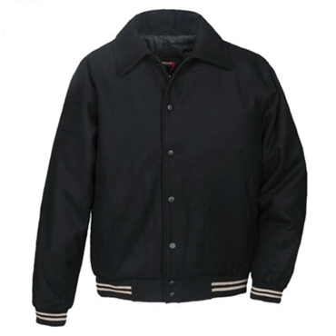 Blouson en lainage, manches tons opposés Fermeture centrale par pressions Poches extérieures, 1 poche intérieure côté gauche Col, poignets et ceinture en tricot. Type de marquage : broderie.