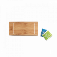 Boîte à thé. Bambou. Avec 2 compartiments. Fermeture aimantée. Incluant 20 sachets de thé açorien "Gorreana" (noir et vert). Livré dans boîte kraft. 160 x 87 x 78 mm | Boîte kraft: 166 x 91 x 87 mm
