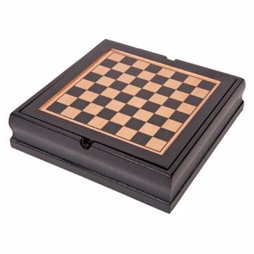 Boite de jeux en bois société avec jeux de dames, domino, backgammon, cartes, dés Bois .