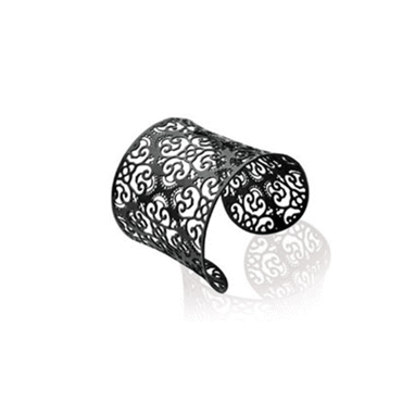 BRACELET ACIER JONC ARABESQUES NOIRES