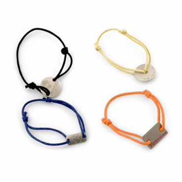Bracelet brésilien métal, finition nickel satin sans couleur. Cordon coton noir - 2 n?uds de réglage. Possibilité du cordon à la couleur pantone à partir de 5000 pcs (voir supplément). Taille de la pièce 22 mm. Délai 5 semaines.