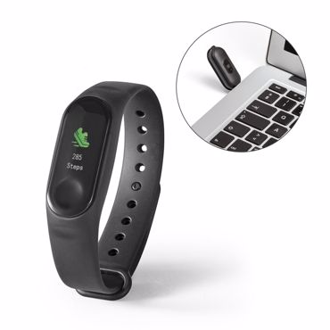 Bracelet intelligent. Silicone et ABS. Avec écran OLED touch et transmission par bluetooth. Notification d'appels, messages et rappels de tâches. Fonctions: horloge, calendrier, réveil, podomètre, compteur de mètre (distance), compteur de calories, compteur de batements cardiaques et de pression artérielle, surveillance du temps de sommeil, alerte anti-sédentarité, alarme anti-perte et télécommande pour caméra photo. Autonomie jusqu'à 15 jours. Bracelet flexible réglable jusqu'à 9 positions. Câble USB pour chargement inclus. Compatible avec système Android et iOS. Télechargement de l'application sur Play Store et AppStore. Fournis avec coffret cadeau. 20 x 240 x 9 mm | Coffret: 78 x 103 x 24 mm