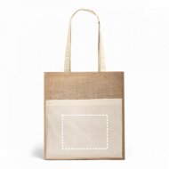 Sac en toile de jute (240g/m²) avec anses de 65 cm et poche frontale 100% coton (140g/m²). 370 x 410 x 100 mm | Poche: 370 x 270 mm The additional information presented is indicative and may vary