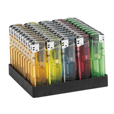 BRIQUET ELECTRONIQUE RECHARGEABLE ASSORTIMENT DE 5 COULEURS TRANSPARENTES