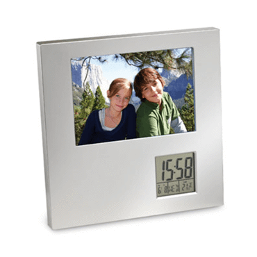 Cadre photo avec horloge REFLECTS ACCRINGTON-plastique, argenté, Mode 12/24 heures, piles incluses, CE, Date, Thermomètre, Minuterie/Compte à rebours, Horloge, Fonction réveil et alarme répétitive, Indication jour, emballage REFLECTS