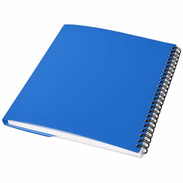 Cahier Curve A5. Cahier Curve A6. Inclut 25, 50 ou 100 feuilles (80 g/m²) de papier vierge. Inclut une couverture en polypropylène de 500 microns, à forme incurvée. Marquage possible sur la couverture, à l'intérieur de la couverture, et sur chaque feuille. Le cahier est disponible en différentes couleurs. Papier, polypropylène.