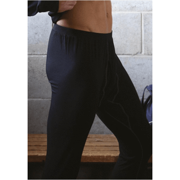 65% bambou / 30% tencel / 5 % élasthanne. Taille et chevilles côtelées. Braguette à fente. Coutures contrastées.