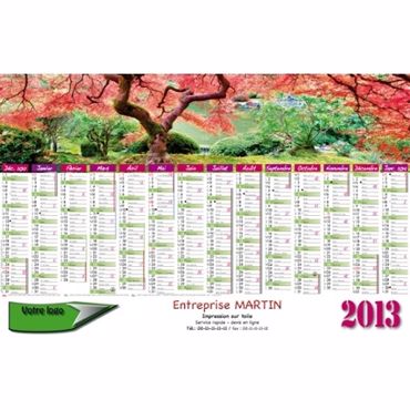 Le calendrier bancaire mini contrecollé ERABLE est un calendrier publicitaire contrecollé, 7 mois par face. Phases lunaires, congés scolaires, trou de suspension.