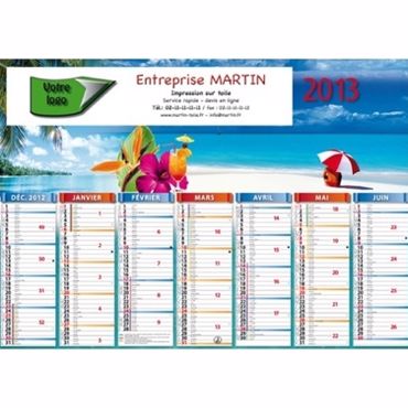 Le calendrier bancaire mini contrecollé EXOTIC est un calendrier publicitaire contrecollé, 7 mois par face. Phases lunaires, congés scolaires, trou de suspension.