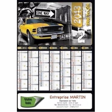 Le calendrier bancaire mini contrecollé JOHN est un calendrier publicitaire contrecollé, 7 mois par face. Phases lunaires, congés scolaires, trou de suspension.