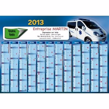 Le calendrier bancaire mini contrecollé URGENCE est un calendrier publicitaire contrecollé, 7 mois par face. Phases lunaires, congés scolaires, trou de suspension.