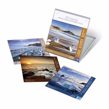 Insolite Repiquage offset Support boîte CD plexiglas Bloc 13 feuillets couché brillant 250 g Format bloc 10,5 x 11,8 cm