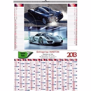 Calendrier mural Illustré CYLINDREES. Calendrier illustré de photos 6 feuillets & planning 12 mois. Dimensions du repiquage : 255 x 40mm. 2 mois par page. 1 rainage pour pliage, pour envoi postal, reliure spirale métallique double blanche