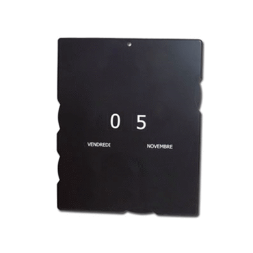 Calendrier. Perpétuel à pendre avec impression recto de grande surface. Disponible en 2 coloris. Marquage en 1 seule couleur. Par défaut, marquage OR sur le noir et BORDEAUX sur le blanc. PVC article en fin de série (rubrique spéciale au catalogue) également non renouvelé après épuisement du stock.