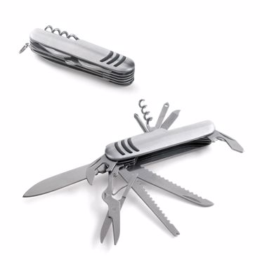Canif multifonctions. Acier inox et métal. Avec 11 fonctions. Dim.: 90 x 25 x 18 mm Sachet individuel, Boîte blanche