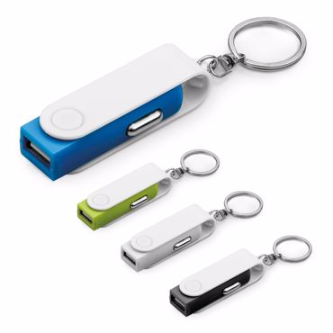 Porte-clés avec adaptateur USB pour voiture, sortie 5V/1A et entrée 12-24V. Produit approprié pour recharger son smartphone.