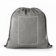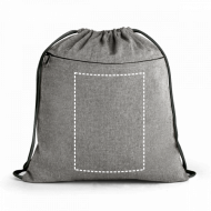 Sac type sac à dos en coton recyclé (150g/m2), avec poche frontale, zipper discret et anses en coton. 370 x 410 mm The additional information presented is indicative and may vary