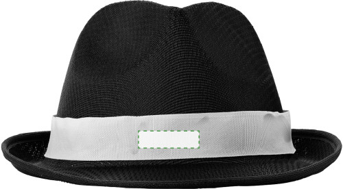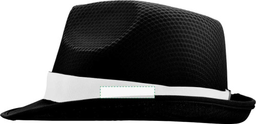Chapeau en polyester livré avec bandeau personnalisable (livré cousu après marquage).