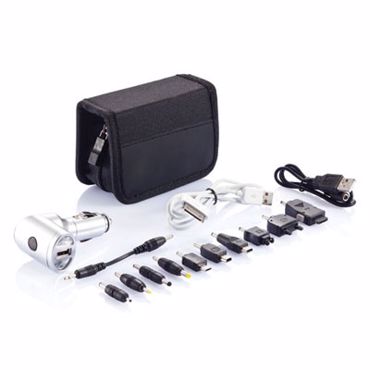 Chargeur de téléphone allume cigare. Set lampe allume-cigare. Lampe torche avec une sortie USB de 5V/max. 500mA. Y compris 12 embouts différents pour téléphones mobiles.. Couleur : noir.