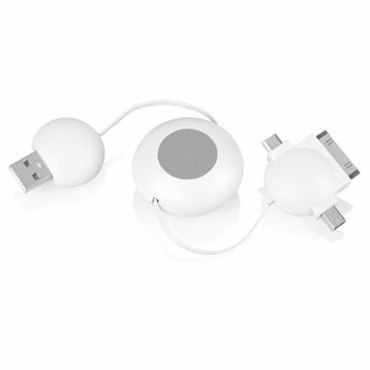 Chargeur de téléphone ZIP universel avec cable rétractable. Recharge via le port micro USB, mini USB et embouts Iphone qui conviennent avec la plupart des téléphones mobiles.