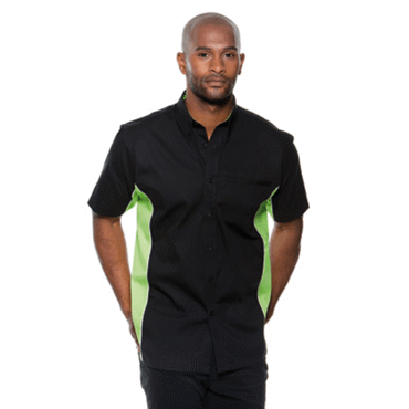 - 125 g/m2 - 85% coton, 15% polyester - chemise sportive 2 tons avec un biais contrasté dans un 3ème coloris - entretien aisé - intérieur du col contrasté - poche poitrine - boutons assortis - coupe ample - fentes latérales renforcées en chevron contrasté.