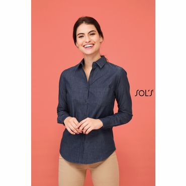 Chemise femme en denim Qualité : DENIM 5 oz 100% coton Coupe cintrée Manches longues Col classique Poignets arrondis 1 bouton Patte de boutonnage 7 boutons Patte capucin boutonnée Pinces poitrine et dos Denim Brut 1 poche poitrine Laver avec des couleurs similaires Laver avant première utilisation Couleurs disponibles :Brut denim Tailles disponibles :XS,S,M,L,XL,XXL