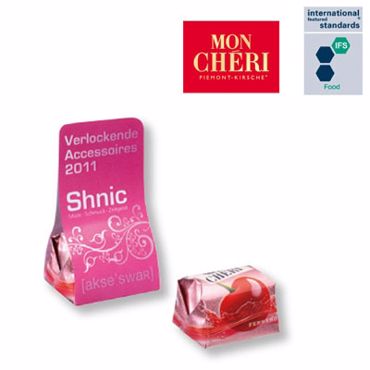 Chocolat mon chéri personnalisé. Mon Chéri en fourreau publicitaire Format env. Poids : env. 10 g Conservation env. 3 mois si le produit est conservé dans un endroit approprié. Conditionnement 100 pièces / carton