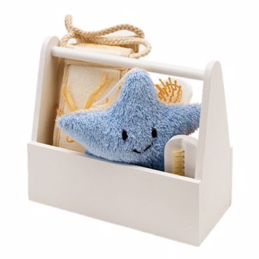 Set de massage "Little Star" dans une boite en bois: bande de massage en sisal, etoile de massage, brosse à cheveux et une brosse à ongle