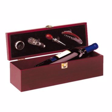 Coffret à vin "Bordeaux" pour 1 bouteille dans un coffret en bois, avec couteau multi-usage avec manche en bois, bouchon élégant, bec verseur et anti-goutte