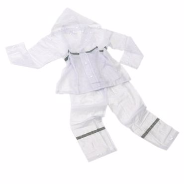 Combinaison de pluie "Rainy season" , 4 pièces : comprend 1 veste avec boutons pression et bandes réfléchissantes, une capuche séparée avec bouton pression, un pantalon élastique, boutons pression et bandes réfléchissantes avec sac à bouton pression