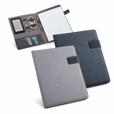 Conférencier A4. Imitation lin et simili cuir. Fermeture magnétique. Bloc: 20 feuilles lignées. Plaque métallique avec finition gomme. Stylo à bille et accessoires non inclus. 233 x 310 x 18 mm | Plaque métallique: 50 x 30 mm
