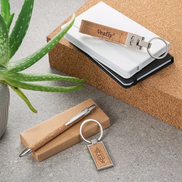 Porte-clés en liège et métal. Livré dans une boîte cadeau en papier kraft. 20 x 100 mm | Coffret: 54 x 125 x 16 mm The additional information presented is indicative and may vary