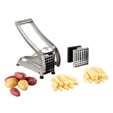 Coupe-frites inox avec 2 grilles de découpe interchangeables pour réaliser vos frites maison, compatible lave-vaisselle