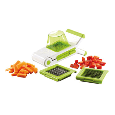 Coupe-légumes avec un support, 3 grilles de découpe interchangeables en acier inoxydable, pour réaliser 3 tailles de dés et bâtonnets de légumes