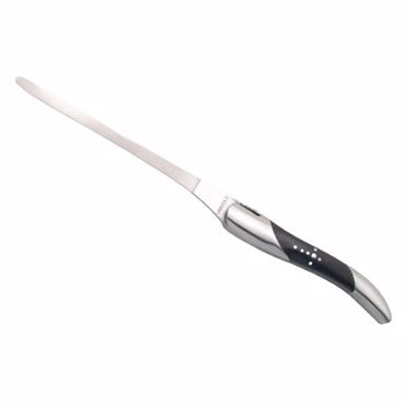 Manche en bois massif de couleur marron foncé. 2 mitres forgées en acier inoxydable. Lame longue et fine permettant notamment d'ouvrir des lettres avec facilité sans aucun danger. Egalement idéal pour couper le foie gras ou lever des filets.