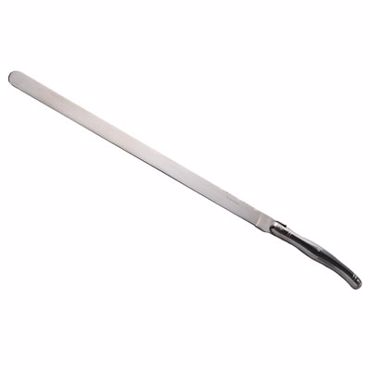 Couteau à jambon. Couteau à lame fixe en acier inoxydable 420 à usage alimentaire (acier martensitique conforme à la norme EN10088-2 2005). Manche en acier inoxydable. Longueur utile de la lame : 32 cm. Compatible lave vaisselle.