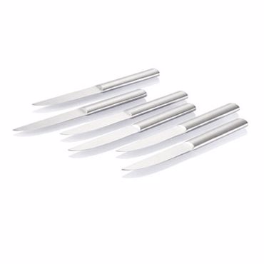 Couteau à steak Stekk. Stekk est un ensemble de 6 couteaux à steak de haute qualité qui sont forgés à l'aide d'un seul bout d'acier inoxydable. Les couteaux sont emballés dans une pochette en néoprène pour les ranger. Modèle déposé®.