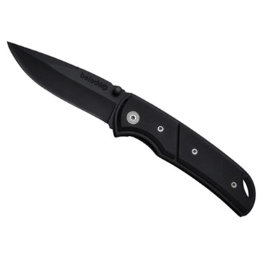 Lame en acier inoxydable, revêtement noir. Manche en acier inoxydable et en aluminium de couleur noire. Cran de sécurité, ouverture/fermeture une main.