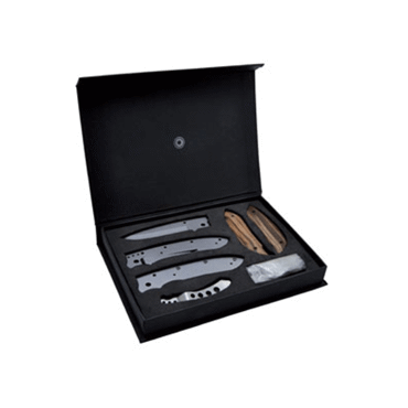 Couteau Riviera à monter soi-même, présenté en coffret cadeau. Comprend 1 lame en acier inoxydable, 2 platines pré-perçée (1 droite et 1 gauche) en laiton, 1 paire de plaquettes en frène exotique pré-ajustée, 1 clip de ceinture, 1 ensemble de rivets, ponts et vis en acier inoxydable, 1 notice de montage détaillée. Clés de montage fournies.